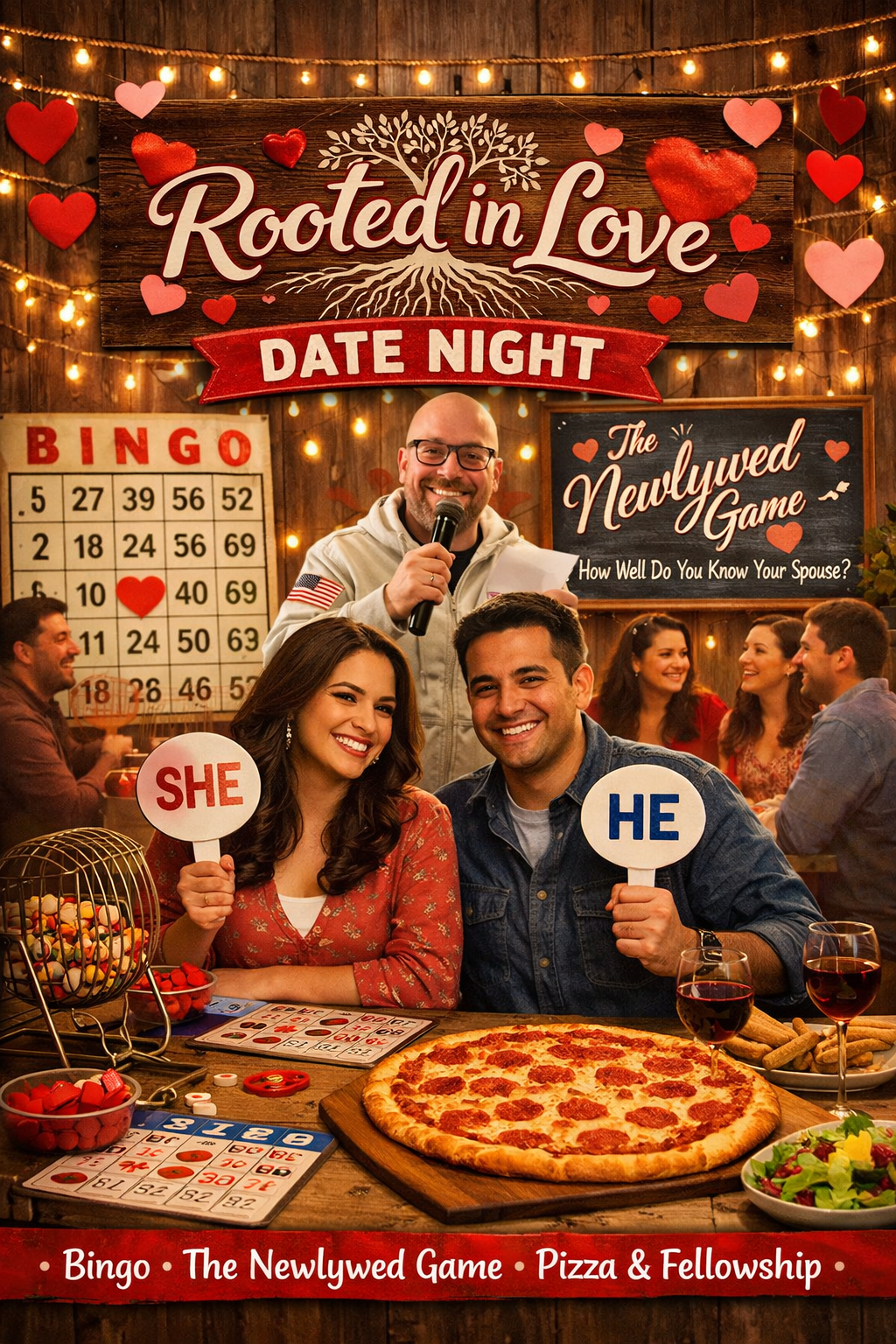 Join us for a fun evening of pizza, dessert, bingo, and the Newlywed Game!